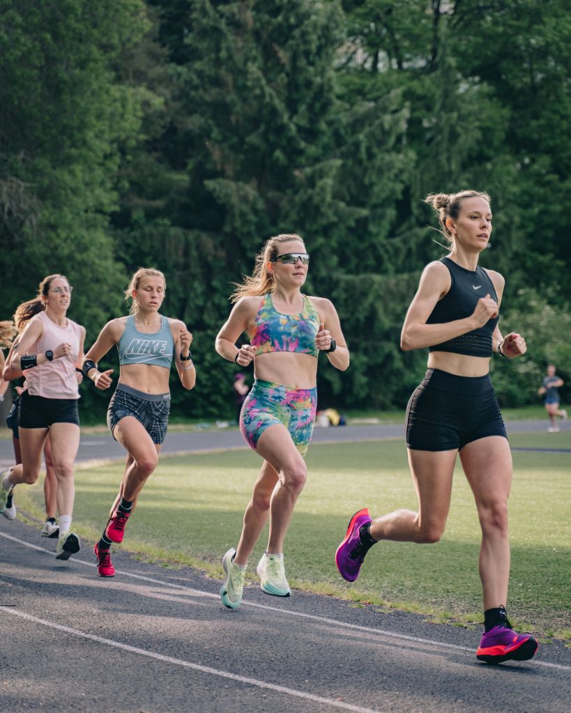 LR: I love the Nike Invincible for an easy run, I didn’t even know they were a thing until pretty recently and now I do a huge percentage of my mileage in them. For racing, again I gotta say I’m a Nike gal these days (I mean, we live in Portland) and a Vaporfly or Alphafly is unequivocally gonna get the job done the FASTEST. I’ll pretty much run in whatever I can get my hands on for trail shoes.