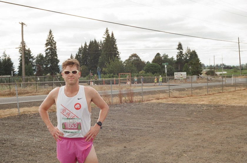 Some quick niceties exchanged, hands shook, intros intro’d, and singlets passed out, we got the group “before” shot, packed our shit into the vans, and went our respective ways: Van 1 to Mount Hood for the first 6 legs, and Van 2, the van I found myself in, meander around downtown Portland for a bit, grabbing breakfast, dodging meth, and building anticipation until we meet up for the leg 7 handoff at Sandy High School. Zoom zoom.