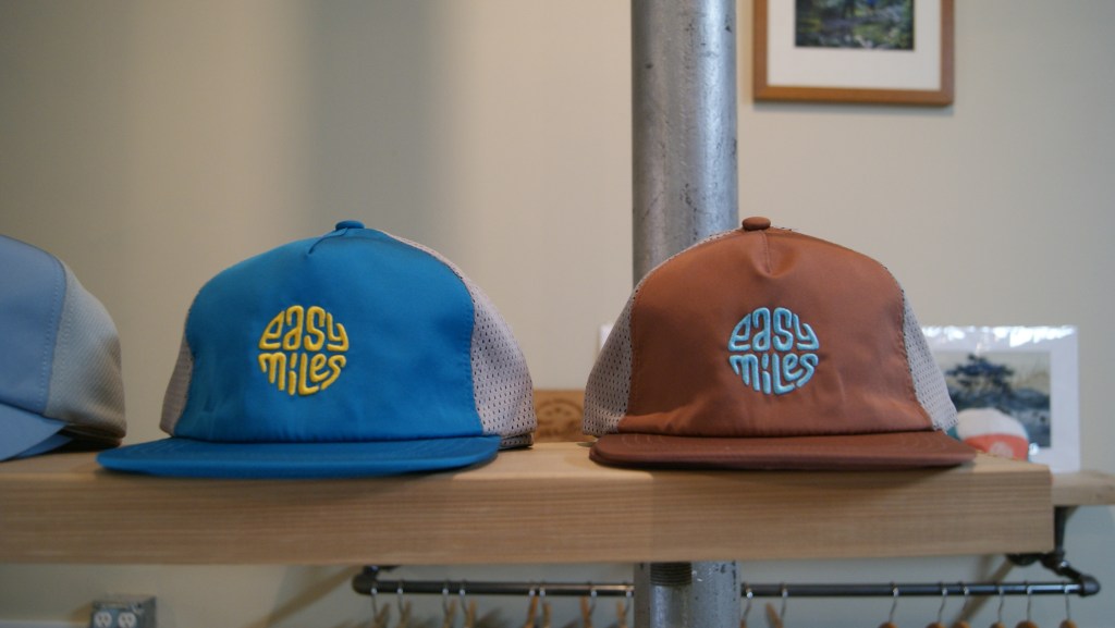 Our hats . Cool. Our, our gorge cap has always been my favorite. It’s like, uh, doesn’t sell anywhere near as like our long haul cap. Mm-hmm. , but it’s always been. Favorite style? Which one is the, um, the one on the bottom, bottom left shelf there. Oh, yeah. Yeah. Okay. Um, just kinda like your, more like classic, classic hat style.
